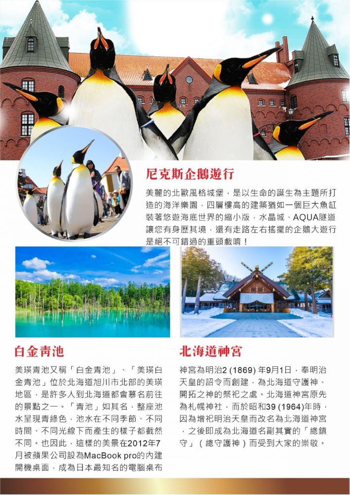 日本行程特色多多,行程多元,如有特殊需求,請填寫表單會由專員服務